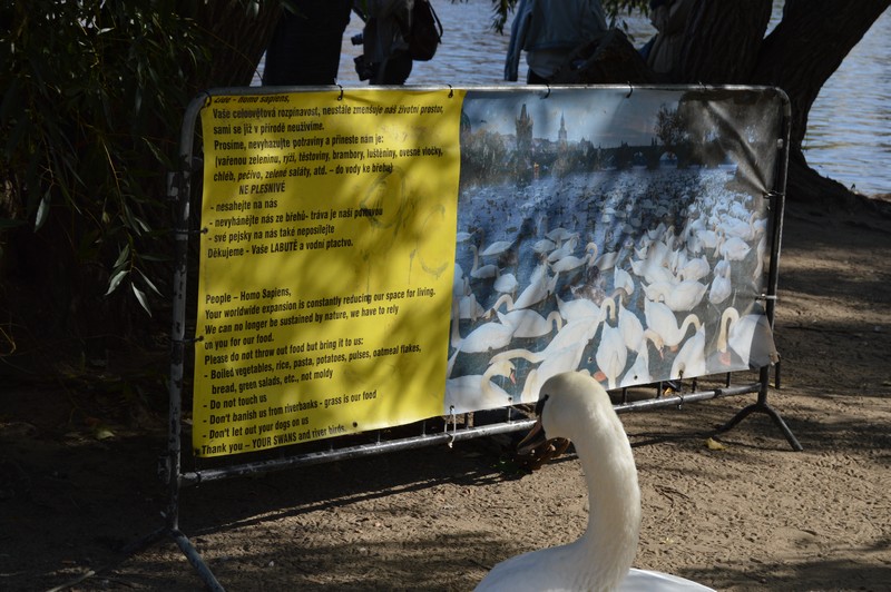 Le pilote du bateau m'a expliqué que les touristes leur donnaient des restants de nourriture, que dès lors les palmipèdes perdaient leur instinct de recherche pour se nourrir et que le pire c'est que le pain pourrissait au fond de l'eau, ce qui était très néfaste pour ce milieu naturel.  (oye)